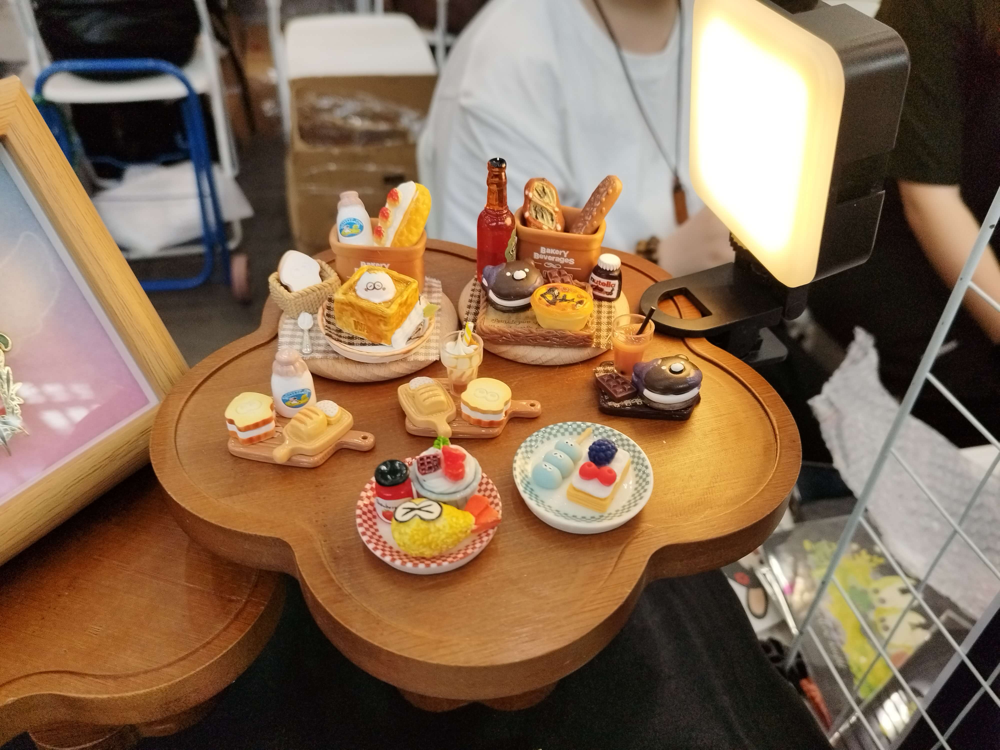 【2025/02/15】开学前一天,我还在和高中亲友激情冲刺 CPGZ-07 —— 这是我拍的觉得很可爱的喷喷摆景(问过摊主了,允许拍照!╰(*°▽°*)╯)(最后也因为急着返校,当天买的本子根本来不及翻,第二天就光速溜了…… QWQ)